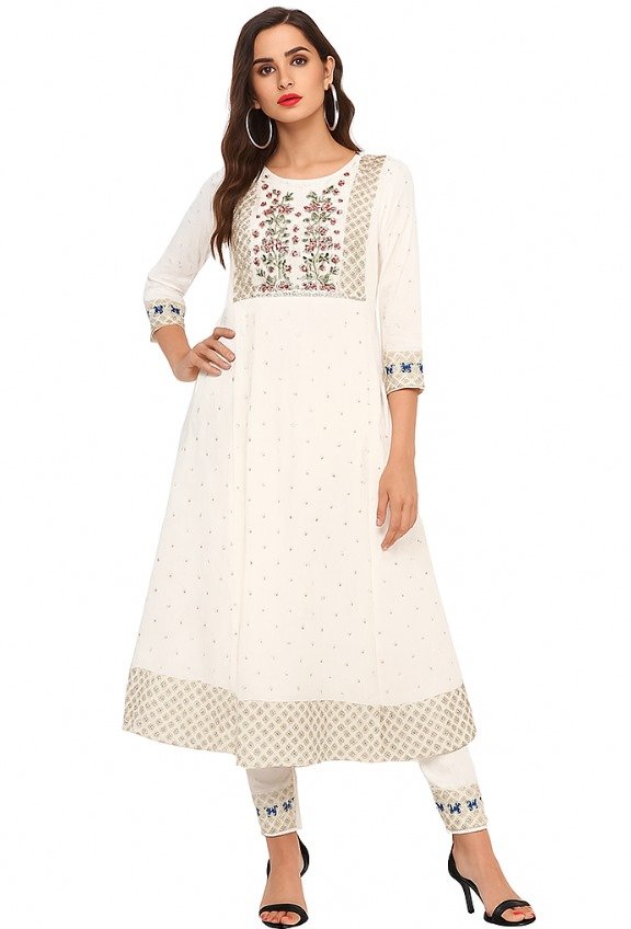 "This white kurthi is absolutely stunning! The embroidery work on the front adds such a rich and elegant look. The cotton fabric is soft, breathable, and perfect for Indian weather. A must-have for anyone looking for stylish ethnic wear online." - Anjali R.