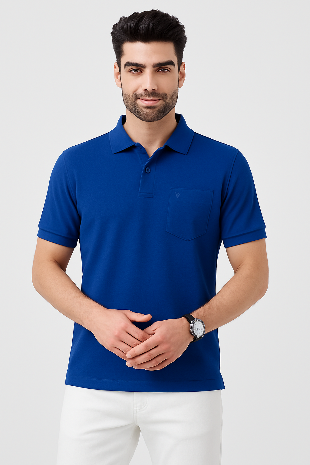 The Pure Cotton Polo Pocket T-Shirt (Azure Blue) is crafted from 100% premium cotton, ensuring softness, breathability, and lasting comfort. Designed with a classic polo collar and a functional chest pocket, it combines timeless style with everyday practicality, making it perfect for both casual outings and smart-casual occasions.