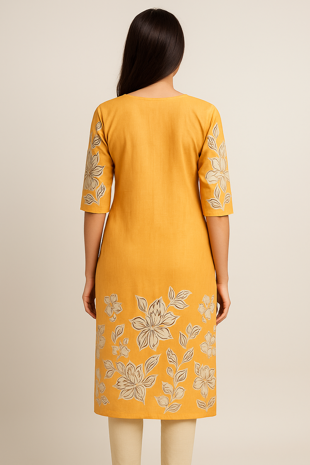 Women’s Yellow Cotton Kurti – 100% Pure Cotton Straight Fit Kurta with Floral Print & Embroidered Neckline